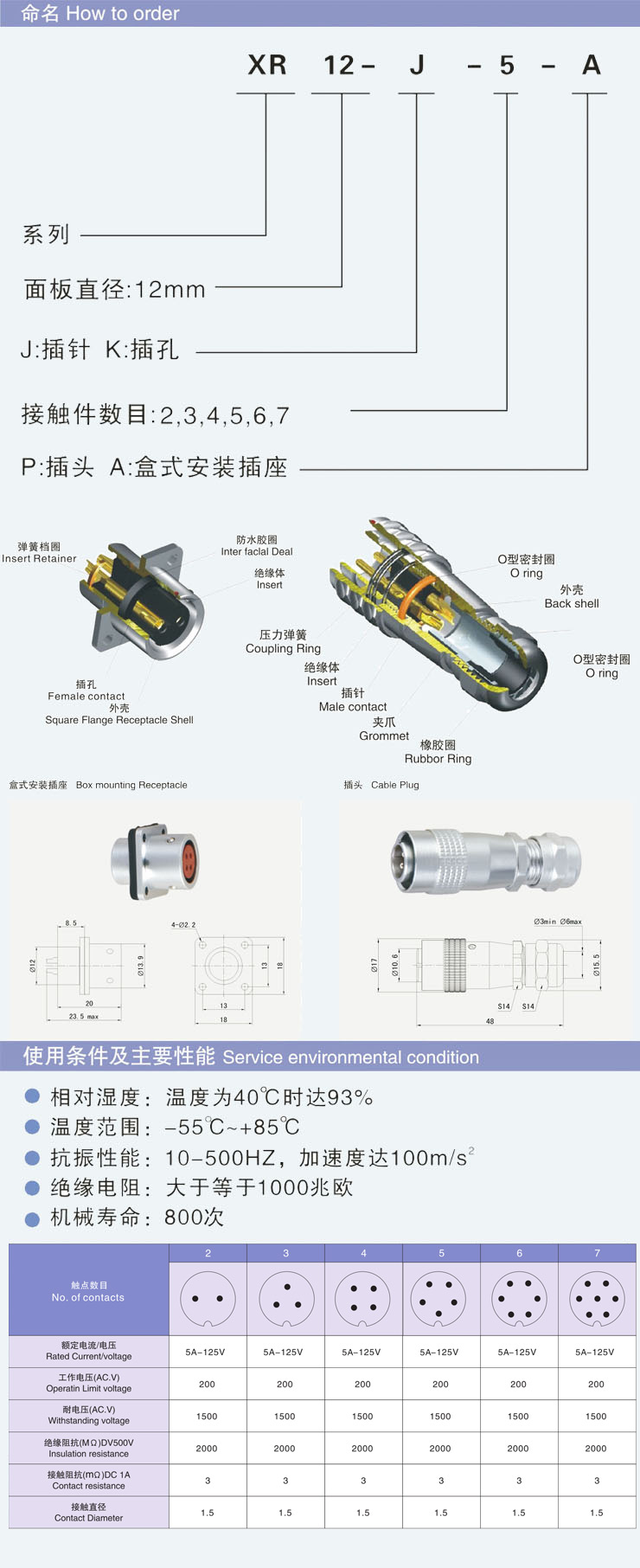 XR12 series connector mounted size is 12mm,the number of contacts have 2,3,4,5,6,7pin,Can be directly installed on the panel used for the brass connector shell,a small beautiful appearance to connect the form of push-in locking ball,push-pull quickly and easily,this product is applicable to a variety of instruments and meters,electronic decices,such as AC-DC link circuit.