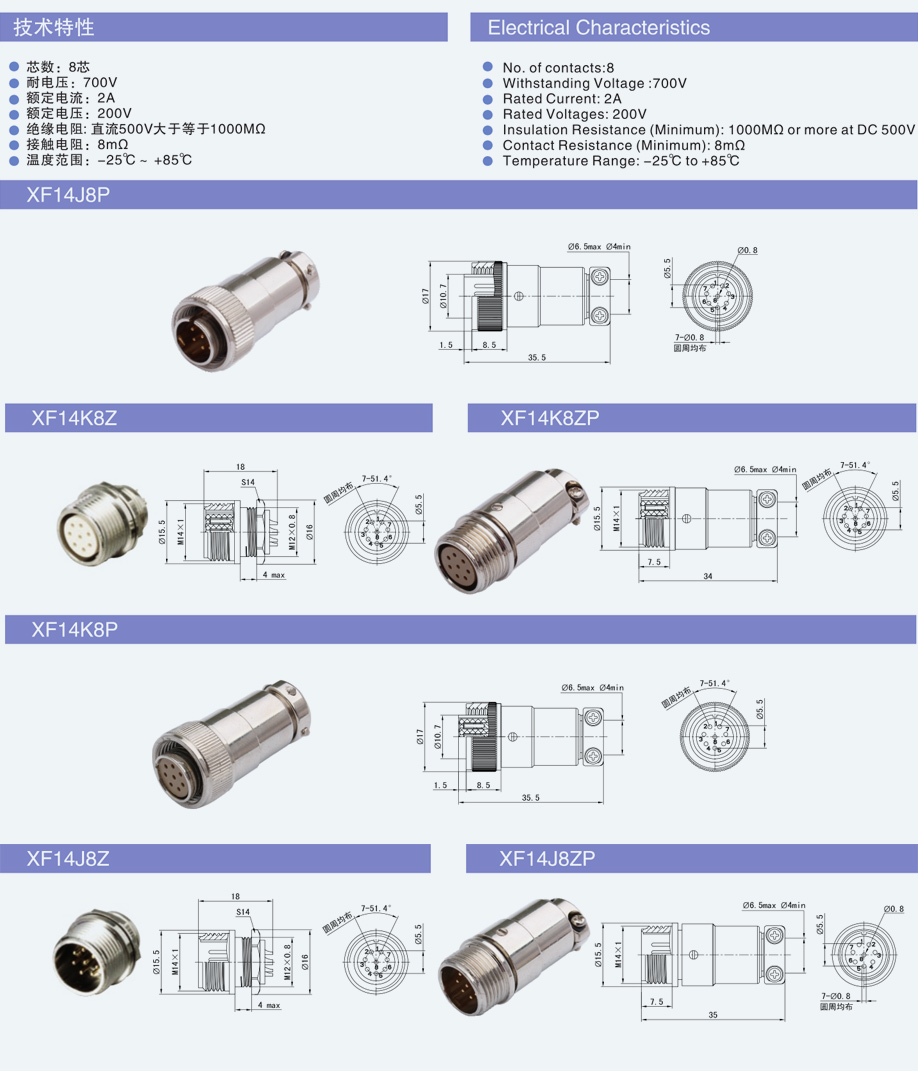 XF14 Miniature circular connector housing is made of brass processing,this prudoct has light weight,small size,durabilituy,has been widely used in various video,audio,CCTV systems,portable wireless radio,factory automation,medocal, ect...