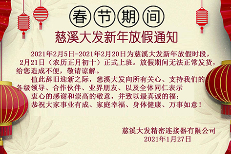 春節(jié)期間慈溪大發(fā)新年放假通知